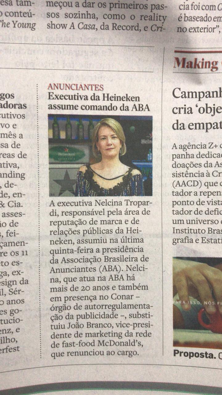 A nova presidente da ABA Nelcida Tropardi é destaque no jornal Estado de São Paulo, confira a matéria publicada.