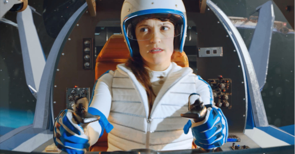 Na peça, depois de usar o produto, a protagonista é transportada para o espaço (Crédito: Divulgação)